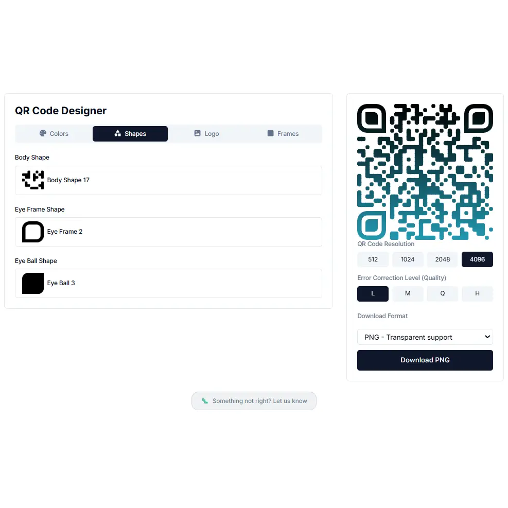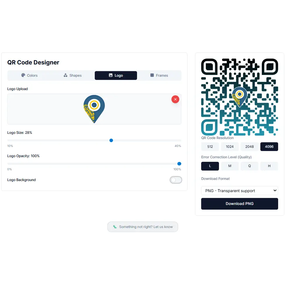 Upload your own logo or image and it embeds in the centre of the QR code. Error correction automatically increases when a logo is added, so the code stays scannable even with the centre covered. You can also pick a logo frame โ a decorative border that makes the logo placement look intentional rather than dropped in.